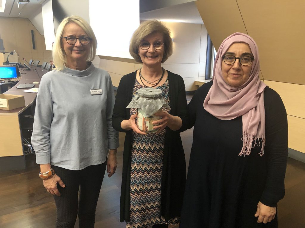 Besonders freue ich mich über die Spende von 600,00 €, die ich für den Verein Projekt Frauenhaus Nordschwaben – Hilfe bei Gewalt an Frauen und Kindern e.V. entgegen nehmen durfte. Im Rahmen des Frauentages 2020 wurde im Landratsamt ein internationales Buffet angeboten, bei dem die Besucherinnen und Besucher um eine kleine Spende gebeten wurden. Der Erlös kommt dem Frauenhaus Nordschwaben zu Gute.